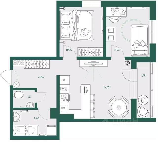 • ✅ Минимальная площадь: 45,7 м²