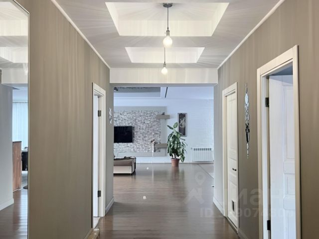 На первом этаже 2 просторные прихожие, большая кухня- гостиная, комната, кабинет, 2 санузла, большая закрытая веранда. На полу ламинат, теплые полы (не электрические, а на водной основе). Потолки натяжные частично, окна ПВХ.