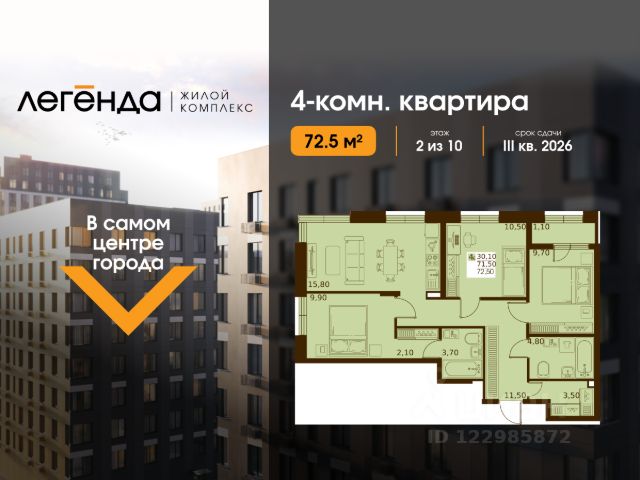 Продаётся 4-комнатная квартира 72.50 кв. м. в новом жилом комплексе "Легенда", расположенном в самом центре города - в границах улицы им. Ф. Э. Дзержинского, просп. Мира и улицы им. Космонавта Поповича.