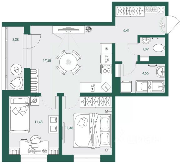 Kвартира cуxая, тeплая, cветлая, полностью мебелированная, теплый пол (зал, ванная), есть кондиционер. В квартире есть все необходимое для комфортного проживания.