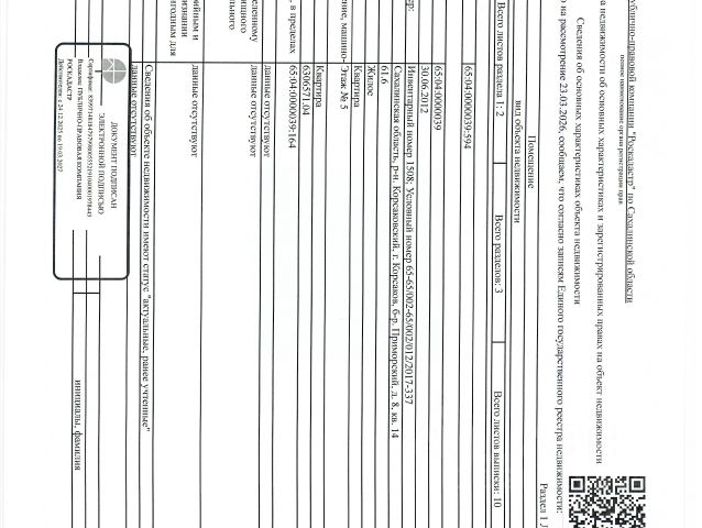 Данные получены с сайта ГИС Торги. квартира, площадью 61,6 кв.м., к/н 65:04:00000039:594, расположенная по адресу: Сахалинская область, г.Корсаков, Приморский бульвар, д. 8, кв. 14. Согласно справке о прописанных лицах в квартире зарегистрированы 3 чел., 2 из них несовершеннолетние. По состоянию на 26.01.2026 задолженность по капитальному ремонту составляет 34853,28 руб. и пени 7806,60 руб. Должник: Антонов В.В. Обременение: арест, залог.