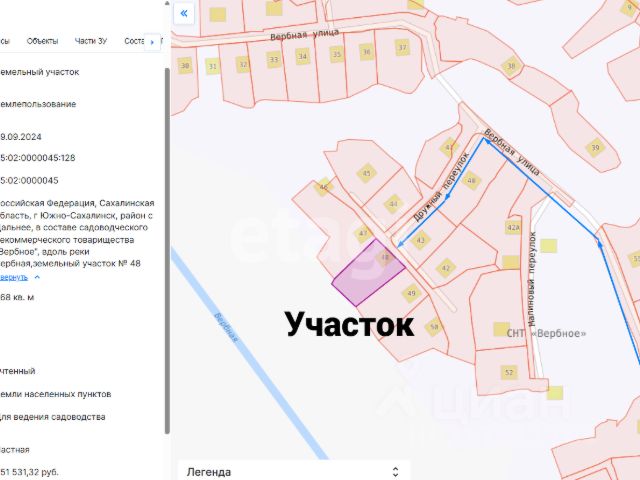 Продаётся земельный участок 8,6 соток в СНТ Ромашка. Проводят ГАЗ в 2024 году! Идеальное расположение, недалеко от ул. Памятная, в 10 минутах до центра города. Участок ровный, прямоугольной формы, сухой. Коммуникации: электроснабжение, собственная скважина. Категория земли: земли населённых пунктов, для ведения садоводства. Кадастровый номер 65:01:0205004:42. Соседи проживают круглый год, дорога зимой чистится регулярно. Если Вы желаете жить в дали от городской суеты в экологически чистом районе и наслаждаться тишиной от городской суеты, звоните и ответим на все Ваши вопросы. Приобретая недвижимость с компанией Этажи, Вы приобретаете полное юридическое и риэлторское сопровождение от начала и до конца сделки. Выгодные процентные ставки на ипотеки во многих банках России у ипотечного брокера с компанией Этажи. Чистота и безопасность сделки Вам гарантированы с компанией Этажи. Звоните и проконсультируем Вас по всем вопросам. Код пользователя: 126587 Номер в базе: 6932763 Купить участок 8 соток в Сахалинской области.