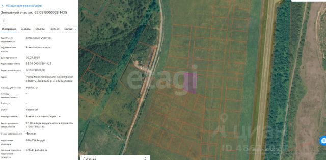 В селе Мицулёвка Анивского района (поле) предлагаются к продаже шесть земельных участков для индивидуального жилищного строительства. Все участки имеют категорию земель населенных пунктов и разрешенное использование под ИЖС, что гарантирует правовую чистоту и упрощенную процедуру оформления строительства. Ключевым преимуществом является полная газификация района, а электрические сети подведены непосредственно к границам территорий, что существенно снижает первоначальные затраты на подключение и обустройство. Площадь участков варьируется от 7 до 11 соток, предоставляя широкий выбор для планирования как компактного комфортабельного дома, так и более масштабного проекта с учетом зонирования под жилую застройку, сад и зону отдыха. Село Мицулёвка характеризуется развитой инфраструктурой и благоприятной экологической обстановкой, сочетая преимущества спокойной загородной жизни с доступностью городских услуг. Данное предложение представляет собой готовое решение для тех, кто нацелен на возведение собственного дома в обжитом и перспективном районе с уже созданными основными инженерными коммуникациями. Кадастровые номера: • 65:05:0000028:1393 • 65:05:0000028:1427 • 65:05:0000028:1426 • 65:05:0000028:1425 • 65:05:0000028:1424 • 65:05:0000028:1423 Код пользователя: 126587 Номер в базе: 10143296