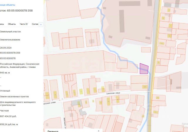 Арт. 68643043 Снижена цена на 200тыс! В Аниве продается земельный участок 10.5 соток (собственность, назначение ИЖС) в отличной локации. Относится к городской черте (ответственность за расчистку снега на городской администрации). Экологически чистый район, свежий воздух, в шаговой доступности от городской инфраструктуры.Сухой, ровный, без деревьев, правильной формы, находится вдоль центральной трассы на Таранай (500 метров от моста). Вода центральная, септик, свет, газ. Кадастровый номер 65:05:0000074:275. Подходит под ипотеку. Есть возможность приобрести смежный участок такой же площади. Земельный участок в Аниве.
