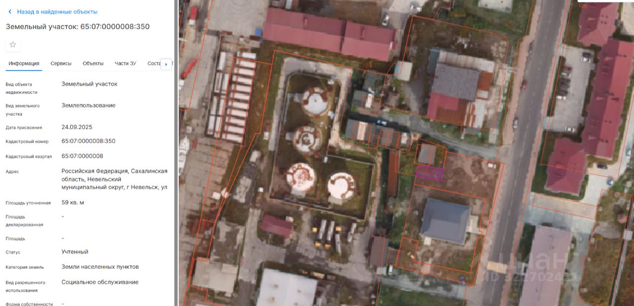 Тип торгов: Аренда Предмет торга: Ежегодная арендная плата Реквизиты решения о проведении аукциона: распоряжение администрации Невельского муниципального округа от 30.09.2025 г. 352. Адрес (описание местоположения) земельного участка: Российская Федерация, Сахалинская область, Невельский муниципальный округ, г Невельск, ул. Советская. Категория земель: Земли населённых пунктов. Разрешённое использование: Социальное обслуживание. Площадь: 59 кв. м. Кадастровый номер: 65:07:0000008:350.