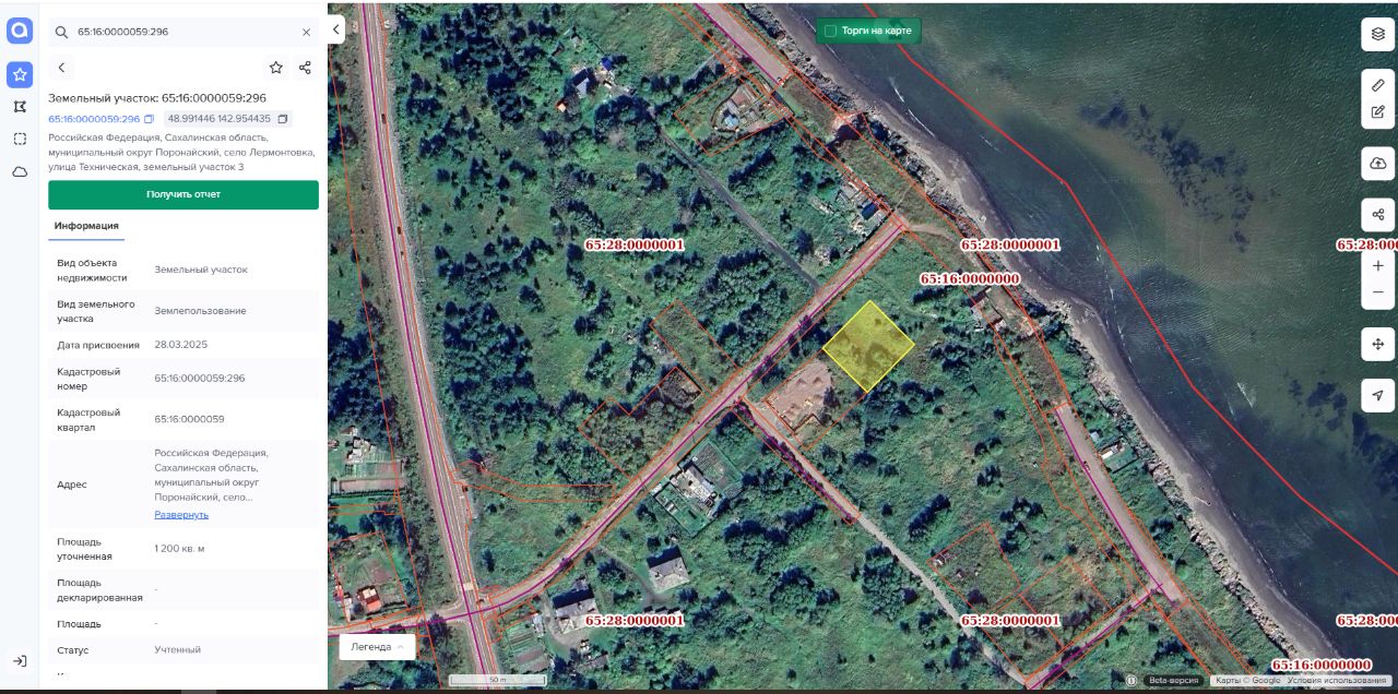 Земельный участок с кадастровым номером 65:16:0000059:296 площадь 1200 по адресу Российская Федерация, Сахалинская область, Поронайский муниципальный округ, с Лермонтовка, ул Техническая