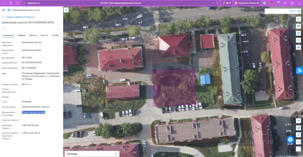 Государственная собственность на земельный участок не разграничена. Местоположение: Российская Федерация, Сахалинская область, Углегорский р-н, г. Углегорск, ул. Победы, Площадь 883 кв. м. Кадастровый номер 65:15:0000005:4916. Категория земель - земли населенных пунктов. Вид разрешенного использования: Общественное питание.