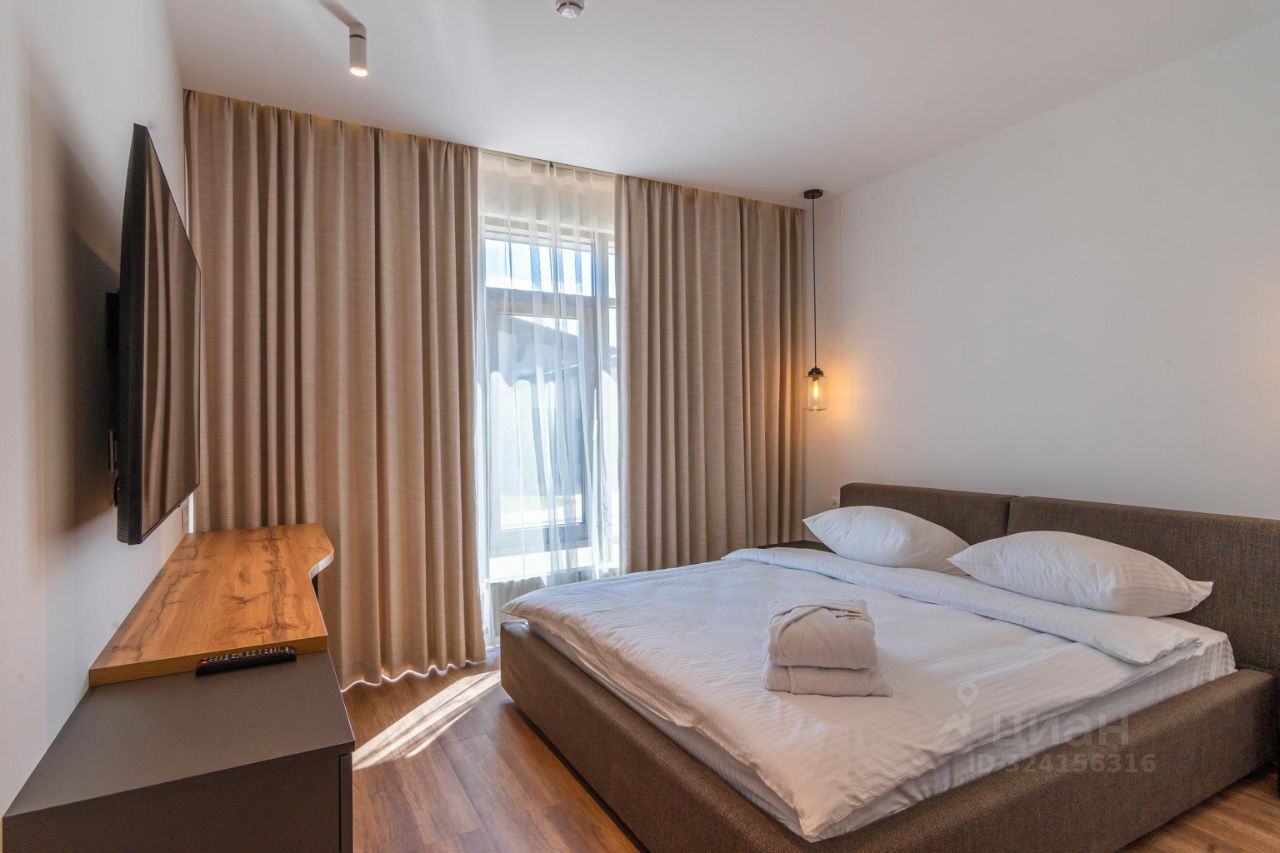 В номере две комнаты. В спальней комнате большая двуспальная кровать Queen Size, гардеробная. Гостиная с мягким диваном, оборудованной кухней, барной стойкой и обеденным столом на 4 персоны. Отдельная комната прачечной в которой расположены стиральная и сушильная машинки. Просторная ванная комната с банными и косметическими средствами. В номере система климат контроля, система очищения воздуха Tion, кабельное ТВ, WI-FI.