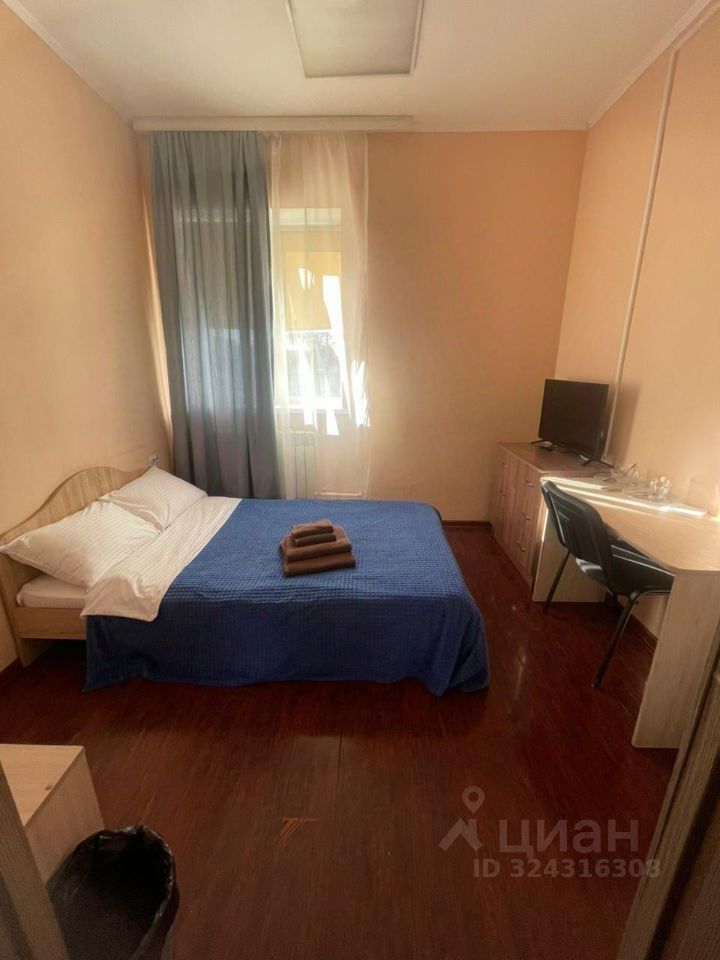 Номер оборудован следующим образом: двуспальная кровать, телевизор, холодильник, микроволновая печь, чайник, посуда. Туалет и душ общий на этаже.