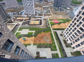 На территории жилищного комплекса размещена большая детская безопасная площадка свободная от автотранспорта.