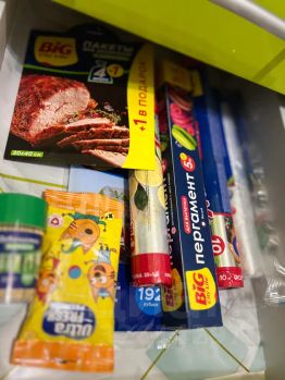 Есть порошок, кондиционер, ватные палочки, ватные диски, влажные салфетки, шампунь, кондиционер, гель для душа (нет зубной пасты и щётки).