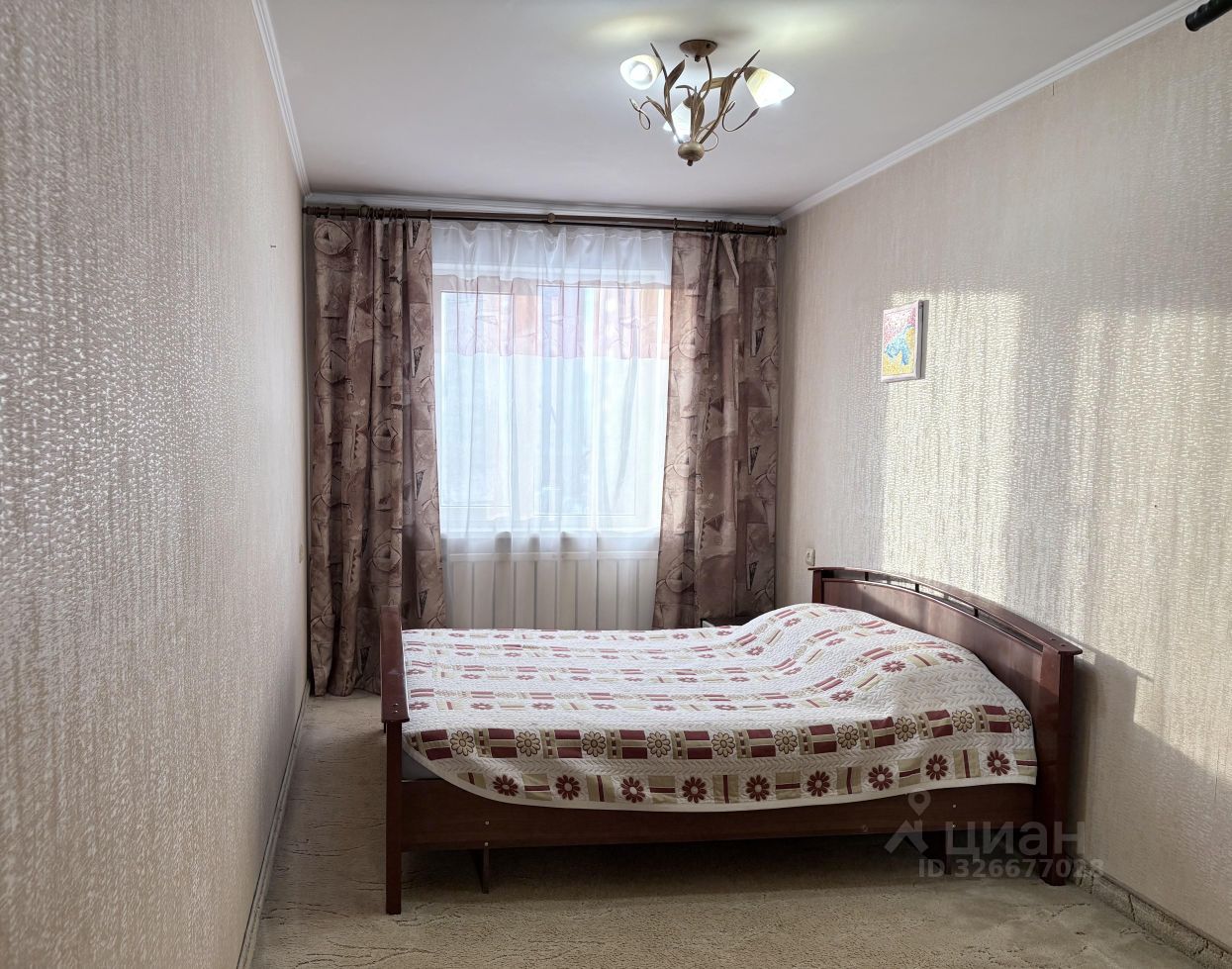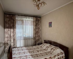 В спальне-двуспальная кровать. В зале-диван (спальное место на двоих), зал совмещён с балконом. Ванная и туалетная комнаты раздельные. На кухне: электроплита, микроволновая печь, холодильник с морозильной камерой, обеденная зона, посуда, электрочайник.