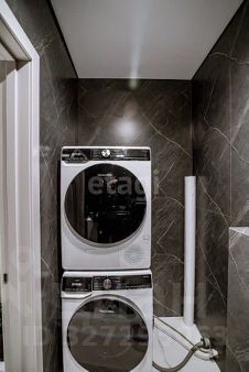 В уборной: стиральная машина и отдельно сушильная, на случай отключения горячей воды установлен титан (горячая вода круглый год).