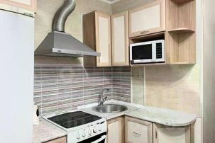 В спальне-двуспальная кровать. В зале-диван (спальное место на двоих), зал совмещён с балконом. Ванная и туалетная комнаты раздельные. На кухне: электроплита, микроволновая печь, холодильник с морозильной камерой, обеденная зона, посуда, электрочайник.