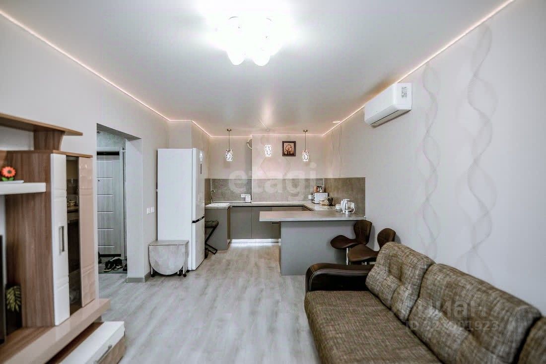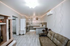 Вашему вниманию представлена 2 комнатная квартира состоящая из кухни-гостиной и изолированной комнаты с просторным балконом (здесь имеется теплый пол, можно сделать кабинет или чилаут зону - имеется кресло-качалка).