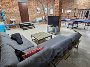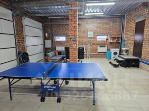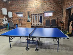Зона отдыха с мягким диваном и столиком и теннисный стол для активных вечеров (зона более прохладная, отлично подходит для активной игры в теннис и для желающих охладиться после парной)