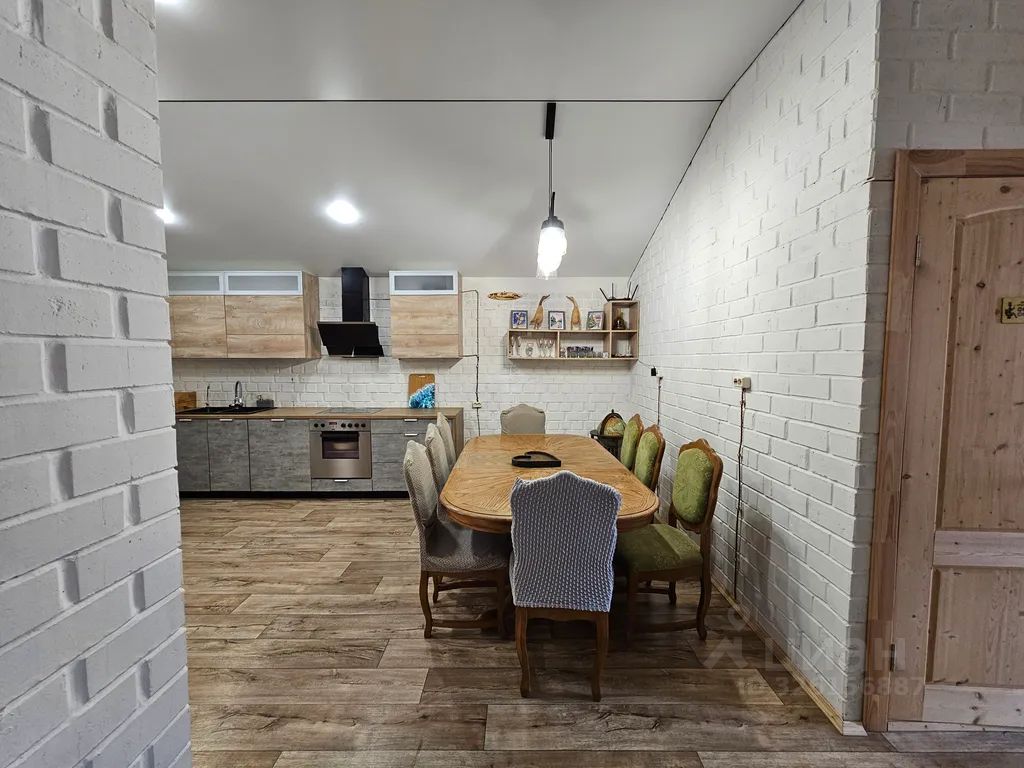 Просторная оборудованная кухня-гостиная с большим раздвижным столом (8+ человек) — идеально для семейных ужинов и дружеских посиделок после активного зимнего отдыха.
