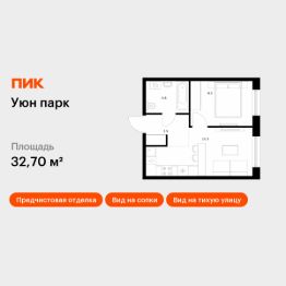 Продаётся 1-комн. квартира площадью 32,7 кв.м на 1 этаже 17 этажного дома (Корпус 18, Секция 1) проекта ПИК Уюн парк. Светлый просторный подъезд на уровне земли, функциональная планировка, большие окна, .