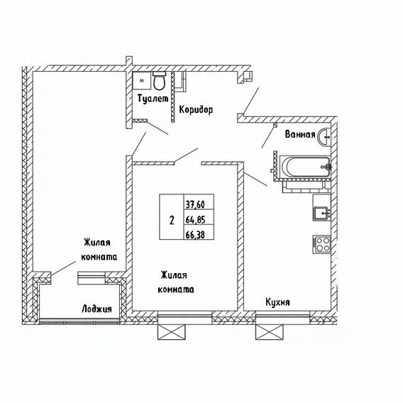 2-комн. квартира, 66,38 м²