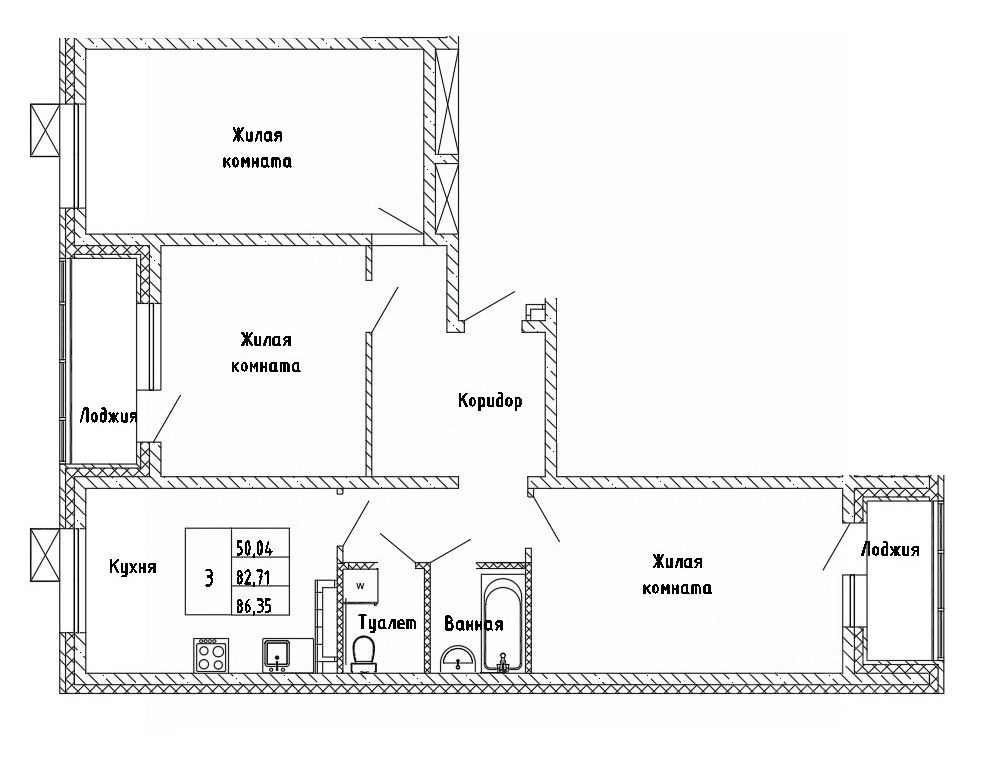 3-комн. квартира, 86,35 м²