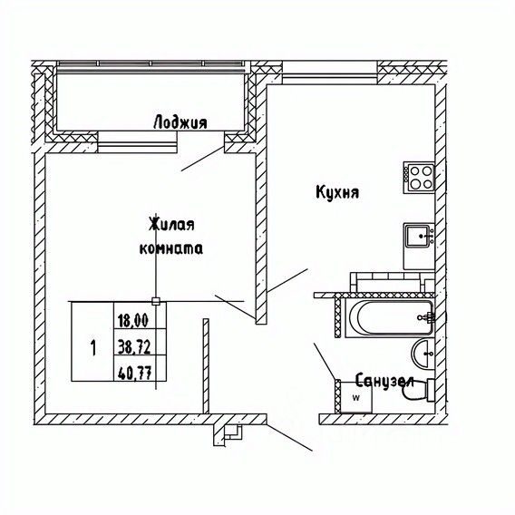 1-комн. квартира, 40,77 м²