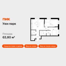 Продаётся 2-комн. квартира площадью 63,8 кв.м на 1 этаже 17 этажного дома (Корпус 18, Секция 1) проекта ПИК Уюн парк. Светлый просторный подъезд на уровне земли, функциональная планировка, большие окна, .