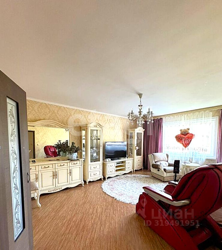 В квартире комнаты раздельные: просторная кухня, большая гостиная, три спальни. Санузел раздельный- в кафеле. Балкон в спальне- застеклен.