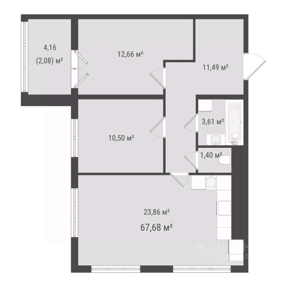 Общая площадь65,6 м²