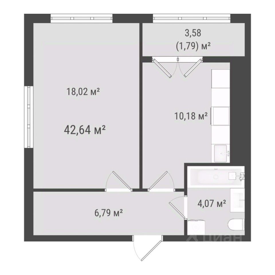 Общая площадь40,85 м²
