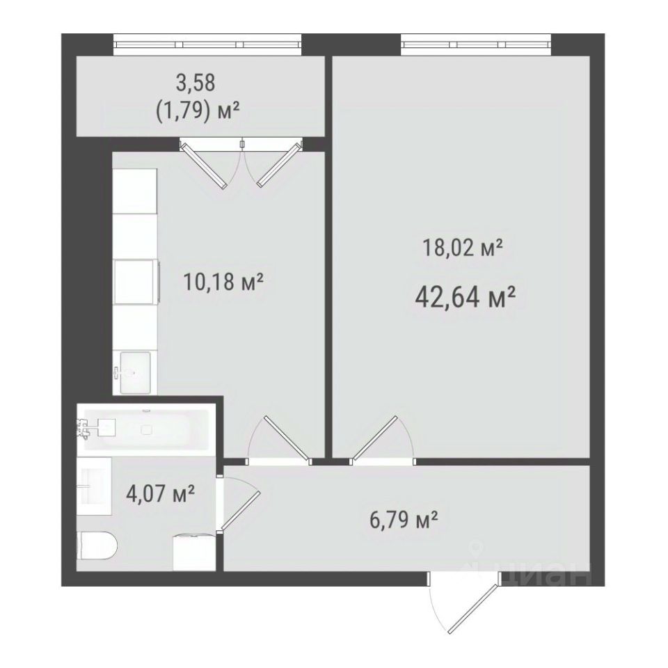 Общая площадь40,85 м²