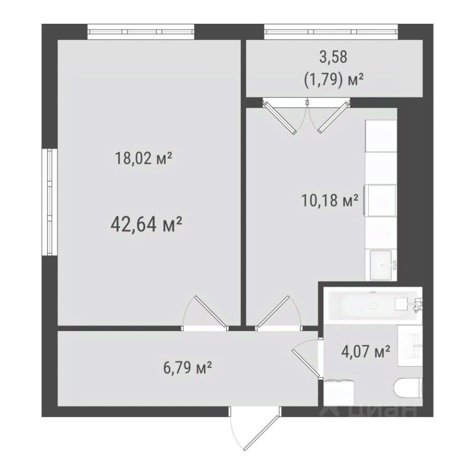 Продается 1-комн. квартира, 40,85 м²