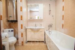 Комнаты изолированные, лоджия 6 кв.м. застеклена ПВХ. Вместительная кухня 12 кв.м. Санузел совмещенный, отделан кафелем, полы с подогревом. Потолки ровные традиционные побеленные, напольное покрытие — линолеум.
