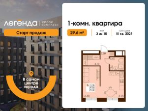 Продаётся 1-комнатная квартира 29.60 кв. м. в новом жилом комплексе "Легенда", расположенном в самом центре города - в границах улицы им. Ф. Э. Дзержинского, просп. Мира и улицы им. Космонавта Поповича.