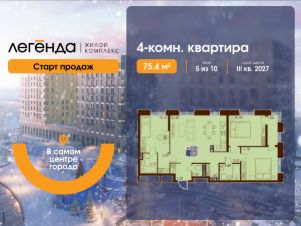 Продаётся 4-комнатная квартира 75.40 кв. м. в новом жилом комплексе "Легенда", расположенном в самом центре города - в границах улицы им. Ф. Э. Дзержинского, просп. Мира и улицы им. Космонавта Поповича.