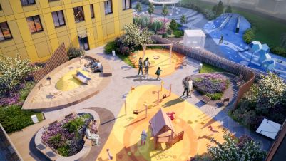 Проектом предусмотрено строительство 8 жилых корпусов разной этажности, внутри которых обустроен приватный двор-парк. Его концепция включает в себя ландшафтный дизайн и озеленение: на приватной территории у дома высажены деревья, разбиты газоны, обустроены детские и спортивные площадки с учетом нейродинамического подхода и с акцентом на развитии вестибулярной системы, сенсорной моторики, ловкости и интеллекта.