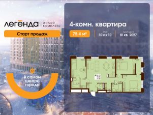 Продаётся 4-комнатная квартира 75.40 кв. м. в новом жилом комплексе "Легенда", расположенном в самом центре города - в границах улицы им. Ф. Э. Дзержинского, просп. Мира и улицы им. Космонавта Поповича.