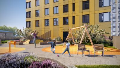 Проектом предусмотрено строительство 8 жилых корпусов разной этажности, внутри которых обустроен приватный двор-парк. Его концепция включает в себя ландшафтный дизайн и озеленение: на приватной территории у дома высажены деревья, разбиты газоны, обустроены детские и спортивные площадки с учетом нейродинамического подхода и с акцентом на развитии вестибулярной системы, сенсорной моторики, ловкости и интеллекта.