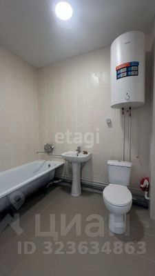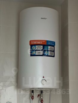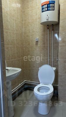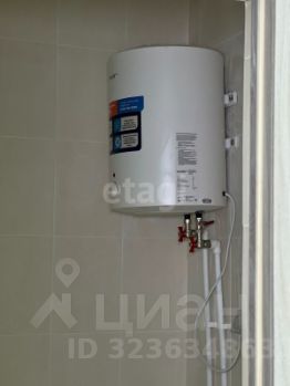 Современная сантехника в санузле, кафель и водонагреватель.