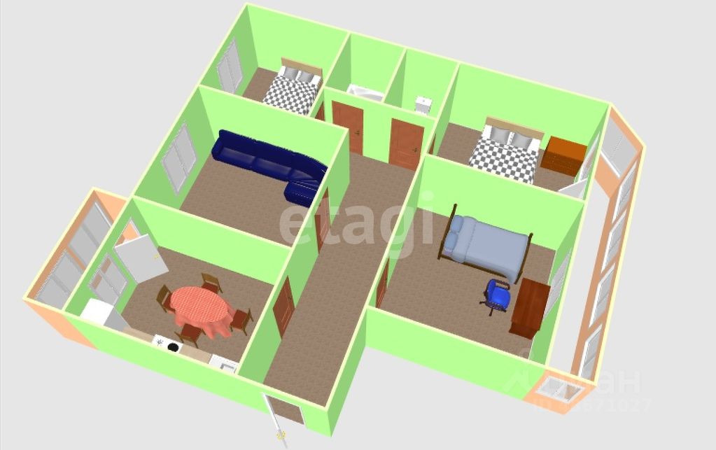 Планировка отличается продуманностью: все четыре спальни изолированы, что обеспечивает приватность, санузел раздельный. Просторная кухня с выходом на застекленный балкон и утепленная лоджия с восточной стороны создают дополнительные удобства. Ориентация окон на восток и запад гарантирует обилие естественного света в течение всего дня.