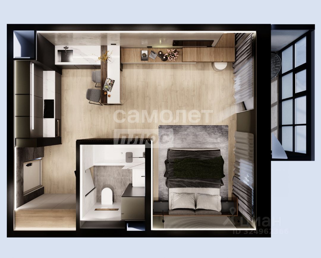 Европланировка- просторная кухня- гостиная, спальня.