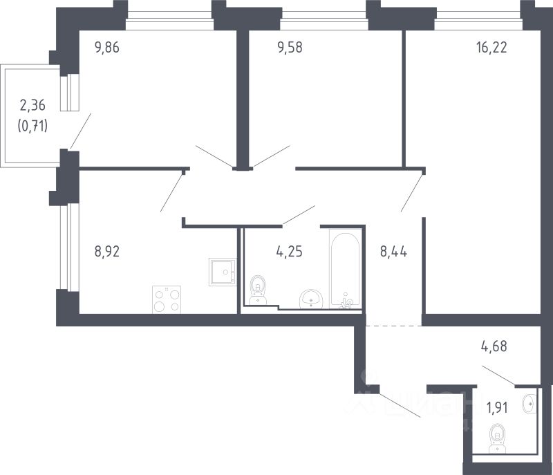 Продаётся 3-комнатная квартира в строящемся доме (Корпус 1.1), срок сдачи: IV-кв. 2026, общей площадью 64.57 кв.м., на 7 этаже. Новый жилой комплекс "Корсаков" от застройщика "Группа Самолет" расположен по адресу: Сахалинская область, Корсаков, улица Толстого.