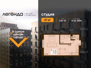 Продаётся студия 27.00 кв. м. в новом жилом комплексе "Легенда", расположенном в самом центре города - в границах улицы им. Ф. Э. Дзержинского, просп. Мира и улицы им. Космонавта Поповича.
