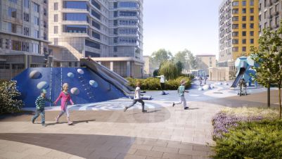 Проектом предусмотрено строительство 8 жилых корпусов разной этажности, внутри которых обустроен приватный двор-парк. Его концепция включает в себя ландшафтный дизайн и озеленение: на приватной территории у дома высажены деревья, разбиты газоны, обустроены детские и спортивные площадки с учетом нейродинамического подхода и с акцентом на развитии вестибулярной системы, сенсорной моторики, ловкости и интеллекта.