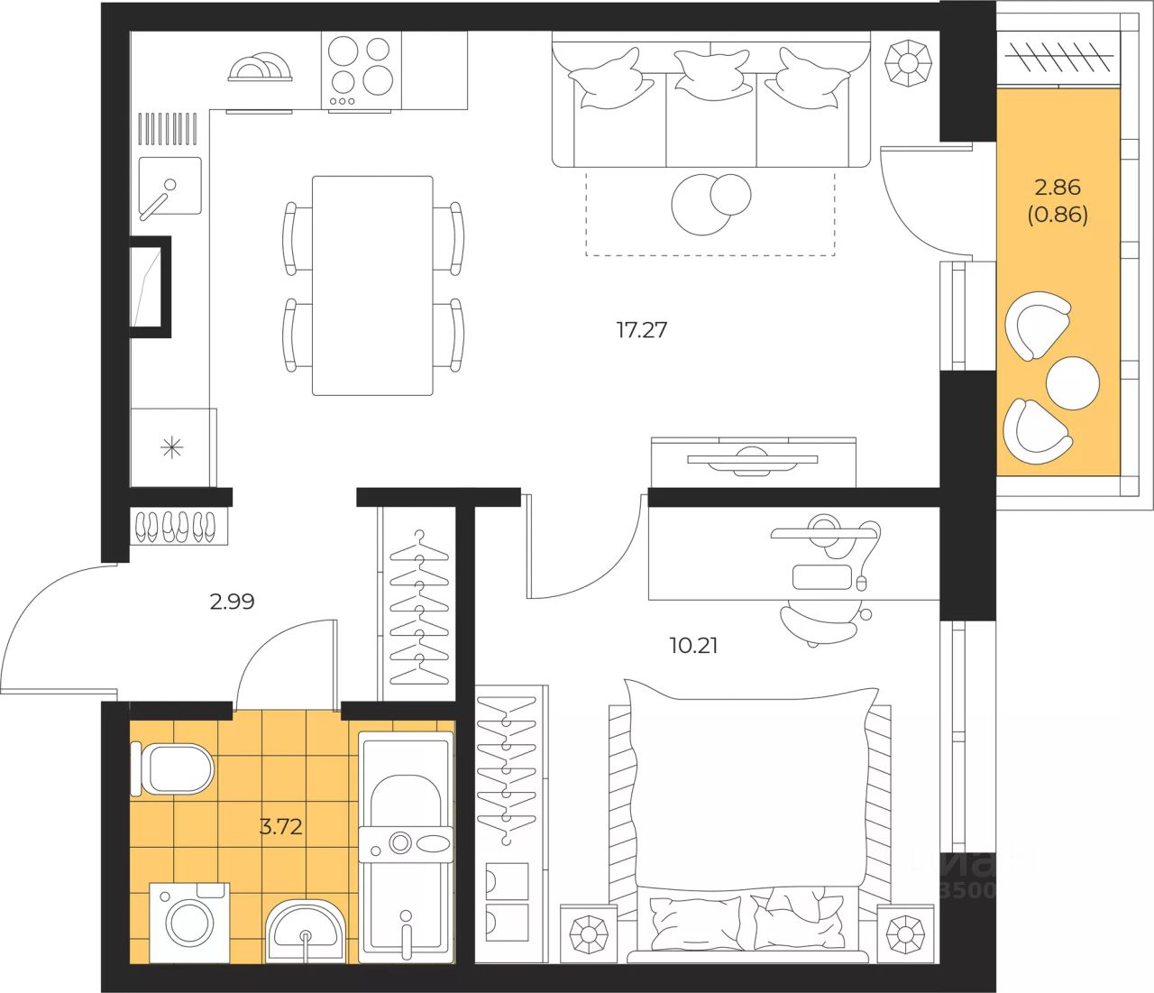Продаётся 1-комнатная квартира в строящемся доме (Дом 2 этап 3), срок сдачи: III-кв. 2026, общей площадью 35.05 кв.м., на 1 этаже. Новый жилой комплекс "Большая Полянка" от застройщика "Лиго ДСК" расположен по адресу: Сахалинская область, Южно-Сахалинск, улица имени Б.П. Полевого