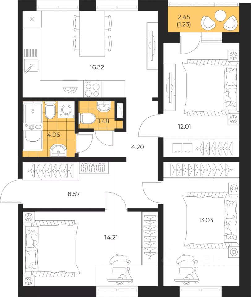 Продаётся 3-комнатная квартира в строящемся доме (Дом 2 этап 3), срок сдачи: III-кв. 2026, общей площадью 75.11 кв.м., на 4 этаже. Новый жилой комплекс "Большая Полянка" от застройщика "Лиго ДСК" расположен по адресу: Сахалинская область, Южно-Сахалинск, улица имени Б.П. Полевого