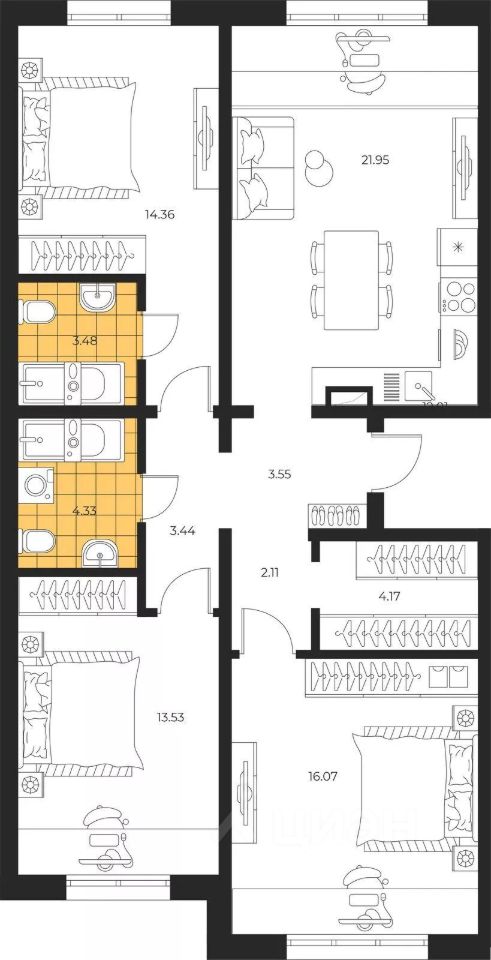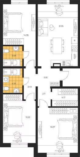 Продаётся 3-комнатная квартира в строящемся доме (Дом 2 этап 3), срок сдачи: III-кв. 2026, общей площадью 86.99 кв.м., на 1 этаже. Новый жилой комплекс "Большая Полянка" от застройщика "Лиго ДСК" расположен по адресу: Сахалинская область, Южно-Сахалинск, улица имени Б.П. Полевого