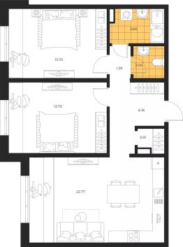 Продаётся 2-комнатная квартира в строящемся доме (Дом 2 этап 3), срок сдачи: III-кв. 2026, общей площадью 64.36 кв.м., на 2 этаже. Новый жилой комплекс "Большая Полянка" от застройщика "Лиго ДСК" расположен по адресу: Сахалинская область, Южно-Сахалинск, улица имени Б.П. Полевого