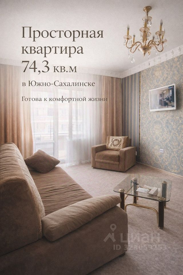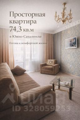 Продаётся просторная 3-комнатная квартира 74,3 м² в Южно-Сахалинске.