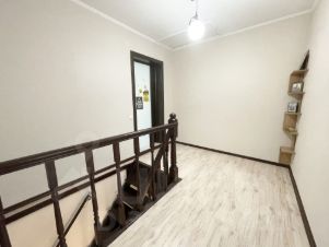 По всей квартире уложен ламинат. На первом этаже система теплый пол. Потолки натяжные. Стены ровные, оклеены обоями в светлых тонах, что создает ощущение простора.
