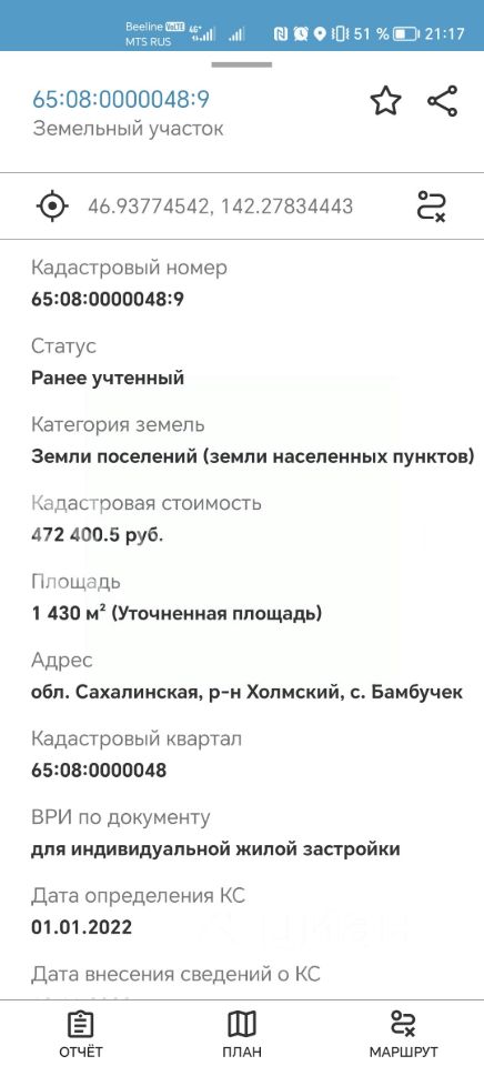 Кадастровый номер участка 65:08:0000048:*** указал продавец